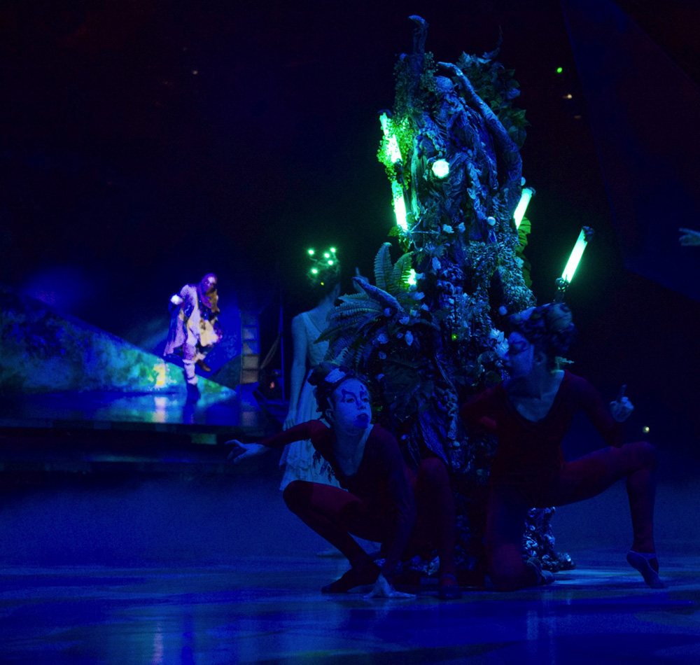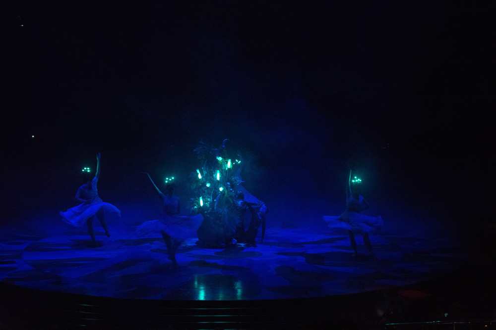 Oasis is a 6 minute theatrical work that fuses contemporary ballet, hip hop, and operatic live vocals with wirelessly controlled LED costumes and set pieces. It was set to original, new music by Martin St-Pierre and performed on the Mystère stage as part of A Choreographers' Showcase for 2016.