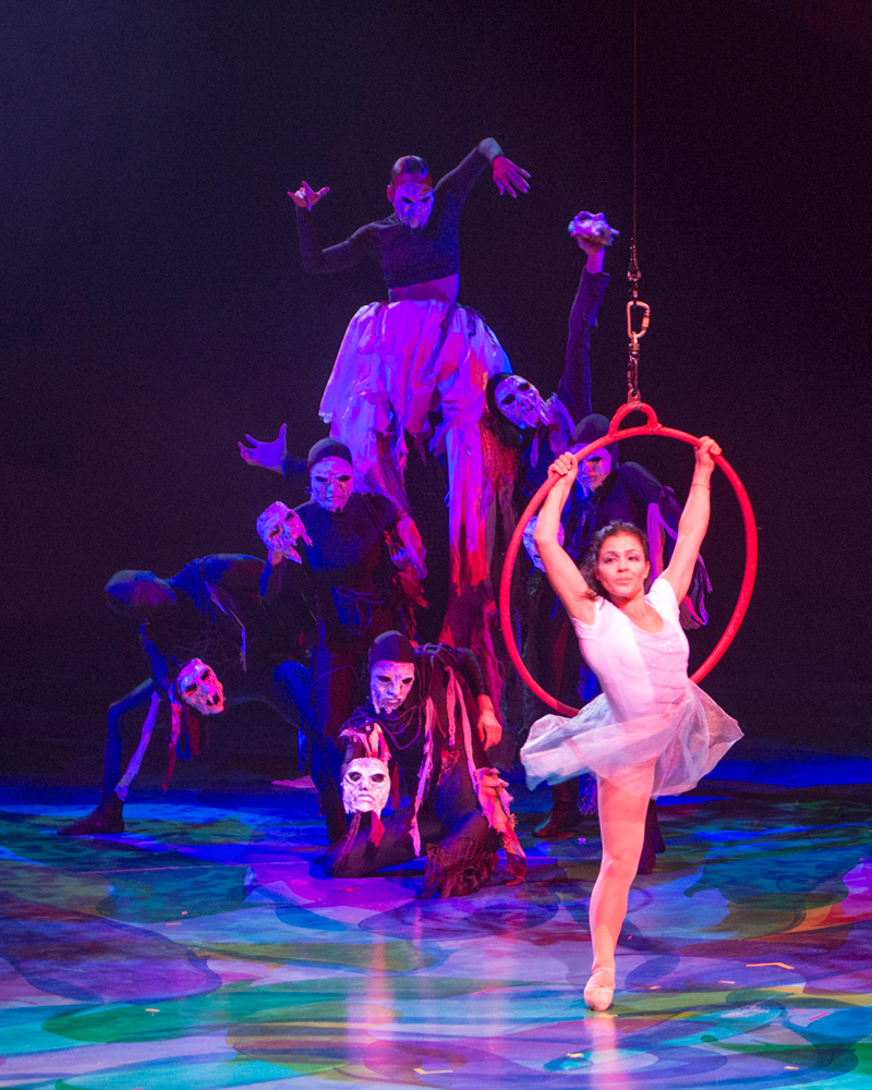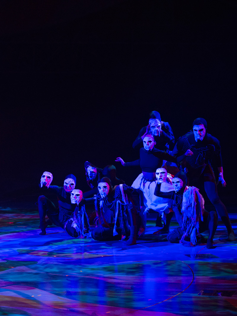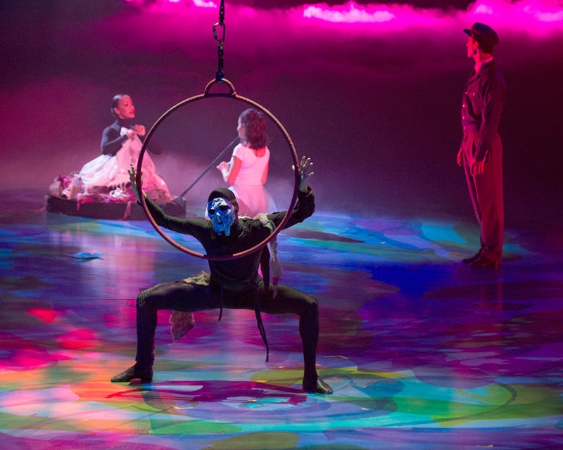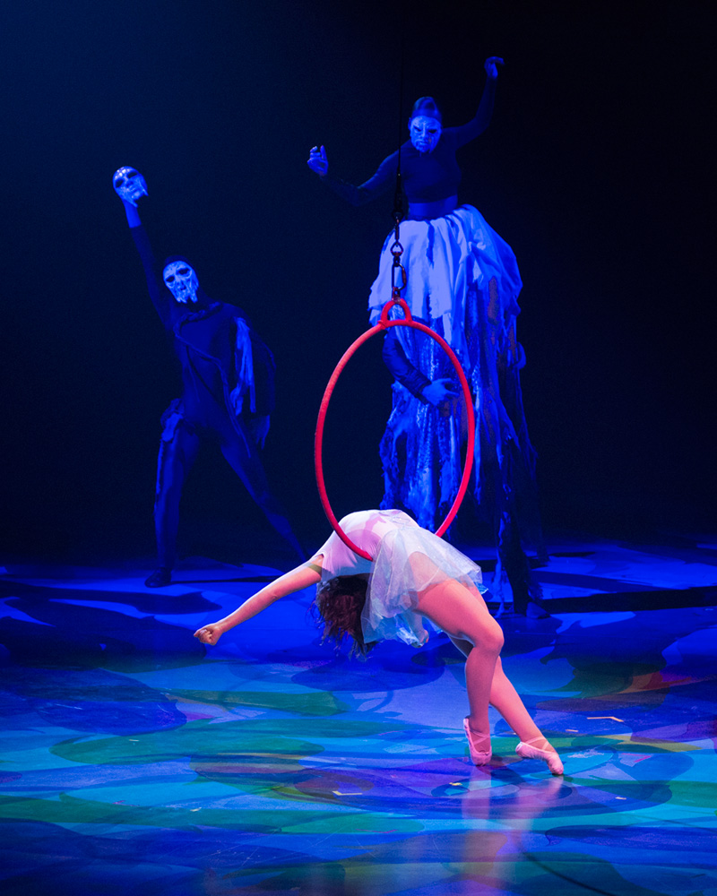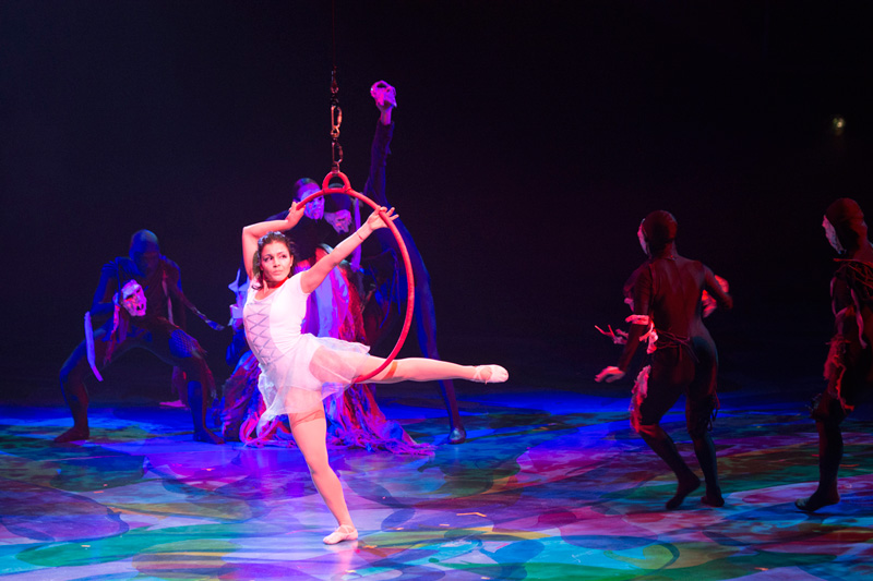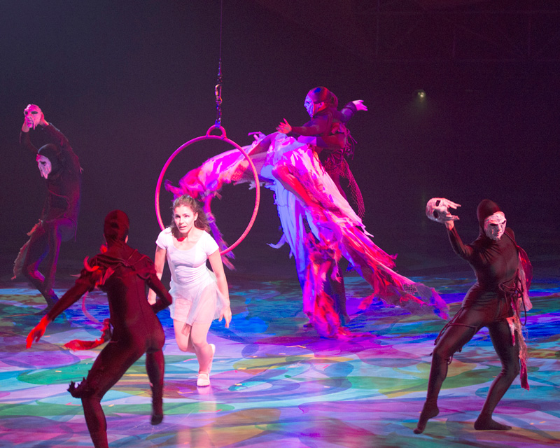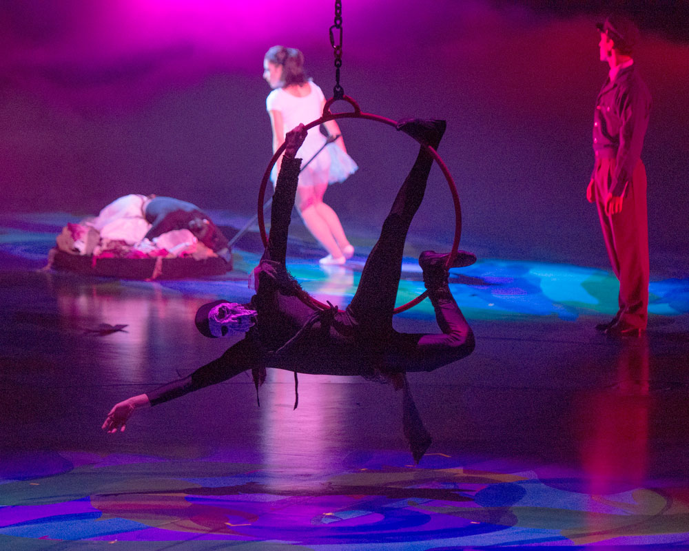 The Girl and the Hydra is a 6 minute theatrical work featuring aerial hoop, contemporary dance, and mask design. It was performed on the Mystère stage as part of A Choreographers' Showcase for 2015.